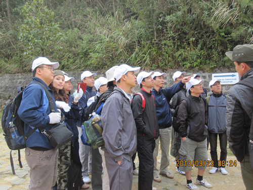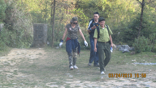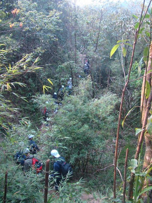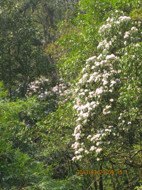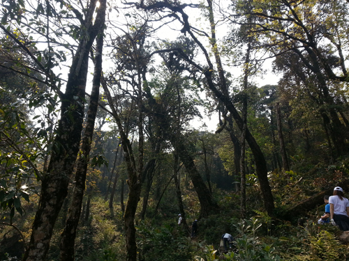 Sau ít phút nghỉ ngơi khi ăn cơm trưa chúng tôi lại tiếp tục hành trình đích đến tiếp theo , đoạn đường khó khăn, gian nan, cộng thêm bữa trưa ăn no lên ai nấy cũng lắc đầu ngao ngán biết thế ko ăn nhiều :D. Chúng tôi lần lượt đi qua rừng Trúc, rừng Tùng, rừng thảo quả thi thoảng lại thấy mấy chú sóc đi kiếm ăn, chim hót líu lo, ngắm nhìn hoa Đỗ Quyên, hoa Báo Xuân mọc 2 bên đường đi.