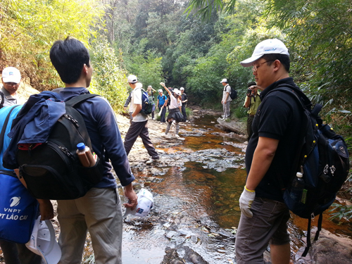 Sau khoảng 1h chụp hình lưu niệm, toàn đoàn tiến hành trở về độ cao 2800m để ăn trưa, nghỉ ngơi trước khi về trạm Tôn. Lên khó bao nhiêu thì về khó hơn rất nhiều. Chỉ cần bạn xẩy chân là tò tí te ngay lập tức. Nhìn lại quãng đường mình đã đi qua mà cảm thấy phục mình thật. Mỏi gối, chùn chân…rõ ràng đang xuống dốc mà không muốn bước. Với cái nóng gay gắt giữa trưa càng làm thêm chùn bước. Nhưng cuối cùng toàn đoàn đã về đến trạm tôn an toàn. Ai cũng vui mừng dù rất, rất mệt.