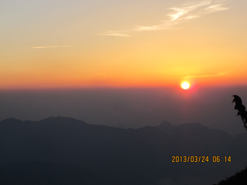 Những dãy núi trùng trùng, điệp điệp. Một màu xanh bạt ngàn của dãy Hoàng Liên Sơn, chấm điểm là những cây Đỗ Quyên đã nở rộ hoa trắng và đỏ. Xa xa là những tầng mây trắng kèm theo là những đàn chim bay qua. Tất cả tạo nên một bức tranh đầy thơ mộng. Khoảng 15h chiều chúng tôi đã có mặt tại độ cao 2800m(nghỉ đêm tại đây), còn khá sớm nên anh/chị em trong đoàn tranh thủ chụp một vài kiểu anh trước khi trời tối. Nghỉ đêm tại độ cao 2800m với một khách sạn ngàn sao, ngắm nhìn thị trấn SaPa thơ mộng, nhâm nhi một chút rượu với đồ nhắm là thịt trâu sấy còn gì sung sướng bằng.